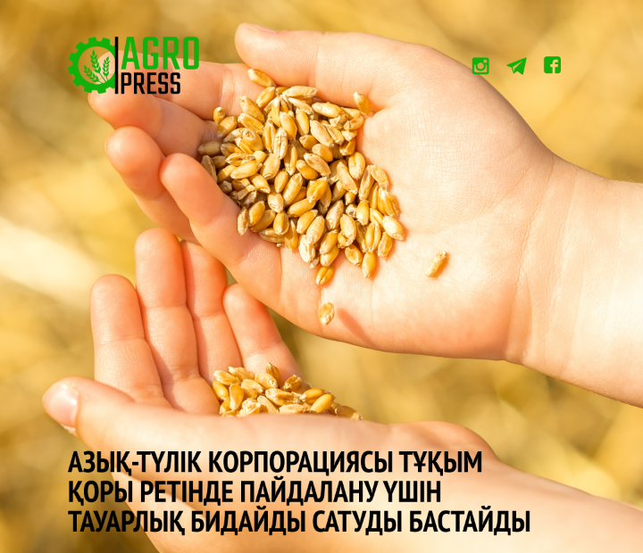 Көктемгі дала жұмыстарына дайындық аясында «Азық-түлік корпорациясы» ҰК» АҚ тұқым қоры ретінде азық-түліктік бидайды мынадай шарттармен сатуды бастайды: Фермерлерді мемлекеттік қолдау шеңберінде Азық-түлік корпорациясында 2024 жылға форвардтық сатып алу бағдарламасы бойынша алынған аванстық төлемдер есебінен тұқым ретінде азық-түлік астығын сатып… Подробнее »Азық-түлік корпорациясы тұқым қоры ретінде пайдалану үшін тауарлық бидайды сатуды бастайды
